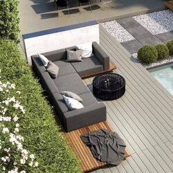 You can construct a deck easily with composite decking material if you want to create a level or tiered outdoor space. Decking boards can also be used to create a sunken conversation area with a fire pit.