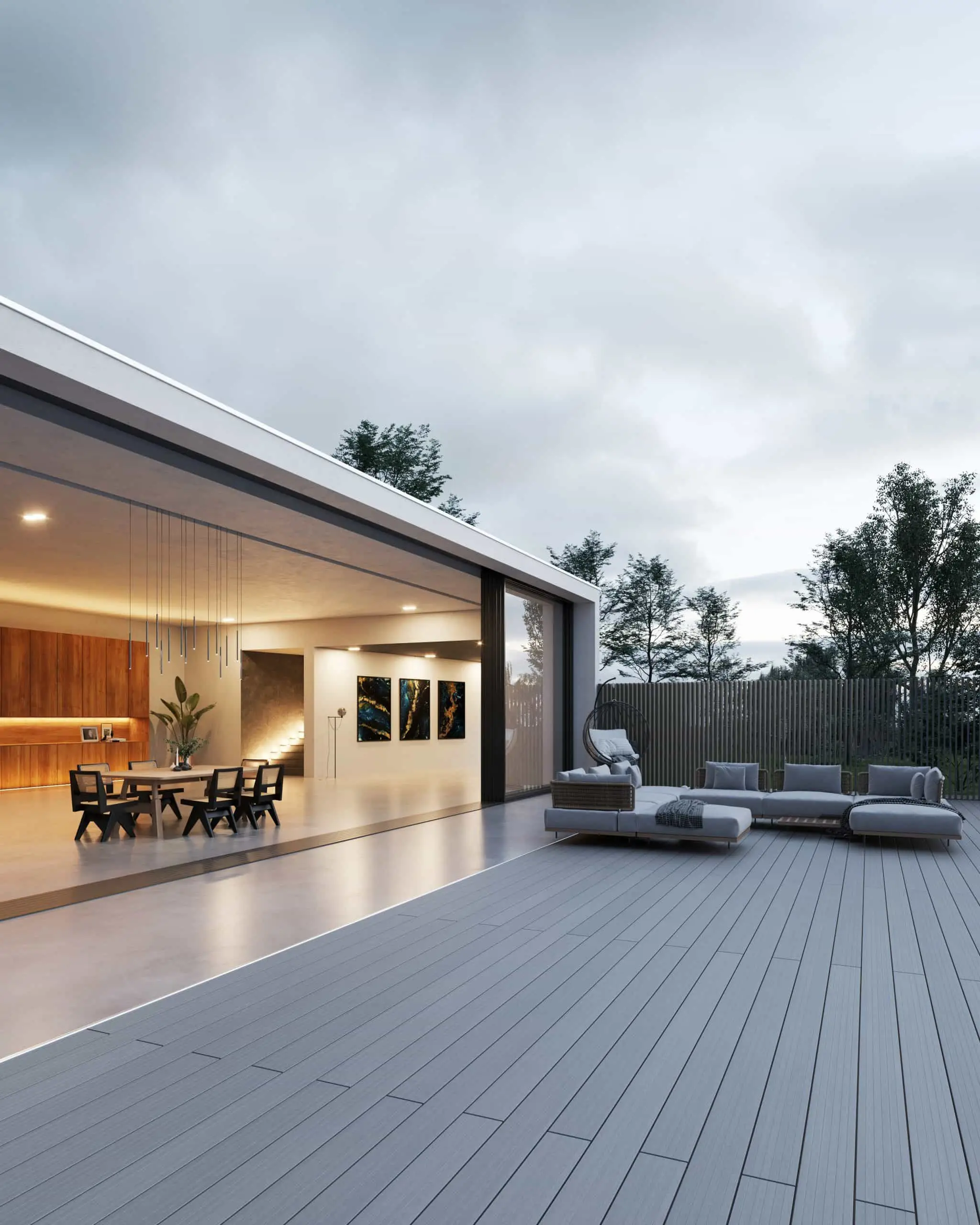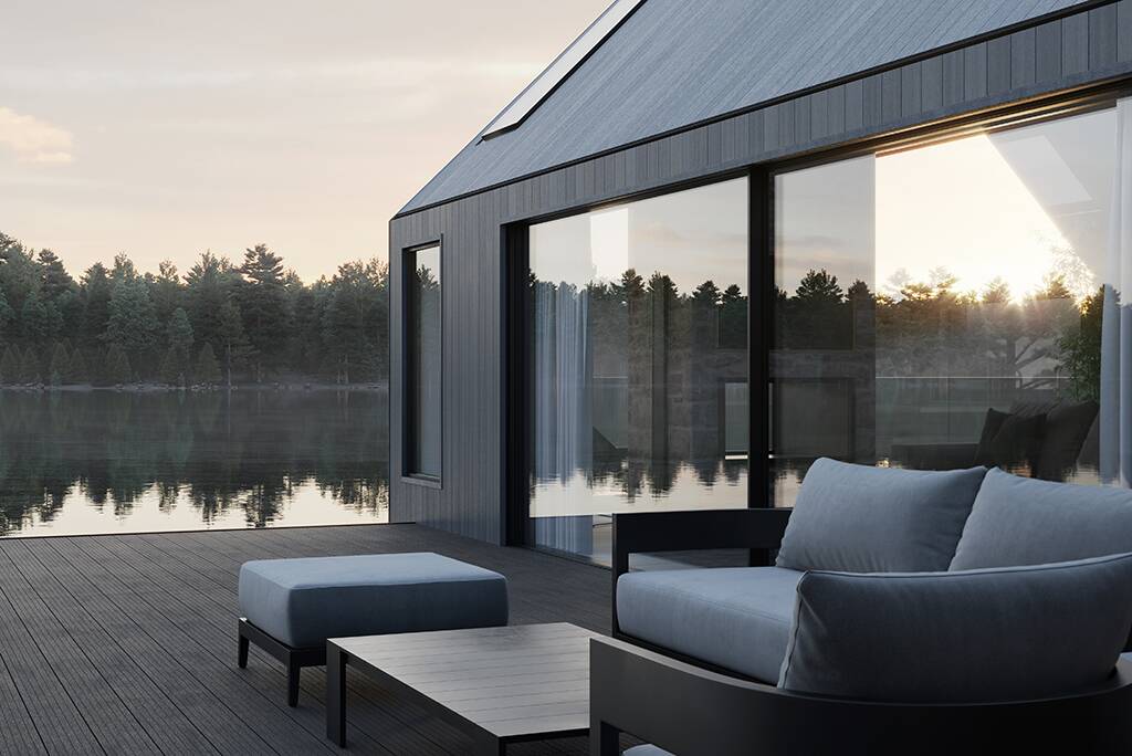 The most popular window frame colours include white, black, and grey. Black decking can be used to match darker window frame colours or to create a contrast with lighter colours. Over the last 5 years we are seeing more and more houses being specified with black window frames making black composite decking an ideal choice.