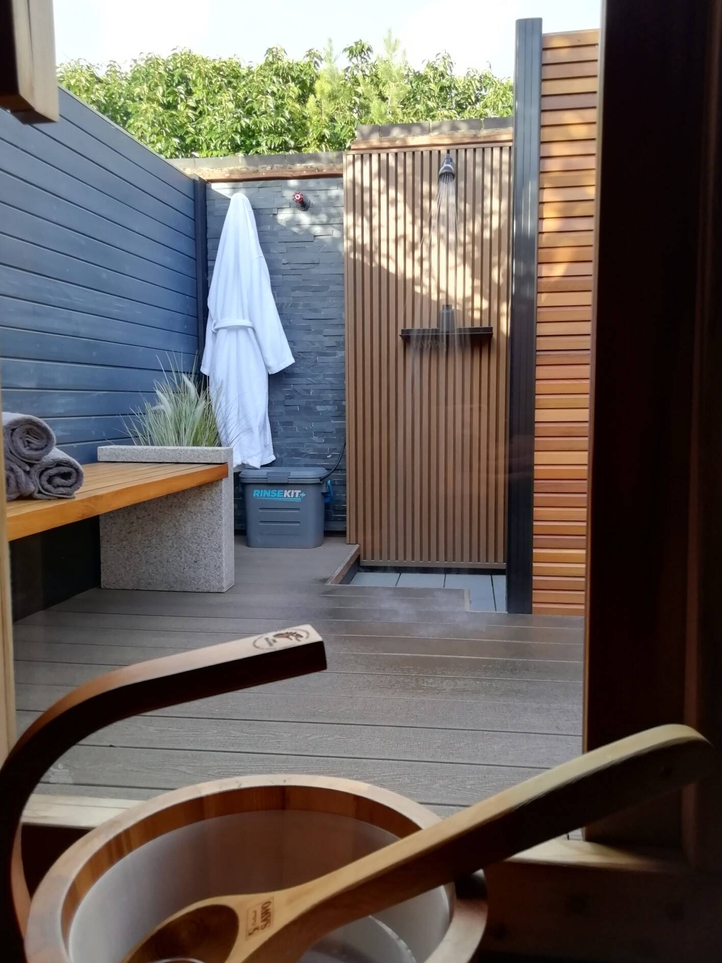 This unique little project makes perfect use of our Forma wood plastic composite material as a textured screen to the rear of a perfect mini oasis spa area. This clever idea means the owners won’t have to worry about the upkeep of the shower backing and will look vibrant throughout many years of use.