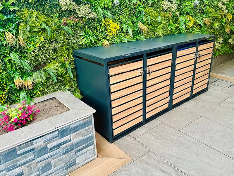 A unique and creative way to make use of our slatted cladding. This luxury traditional home has created a modern twist with this bespoke outdoor kitchen and bar area perfect for socialising. The added benefit of our composite slatted cladding is not only that it is aesthetically pleasing on the eye but it will last throughout all weather conditions – and through all of the parties!